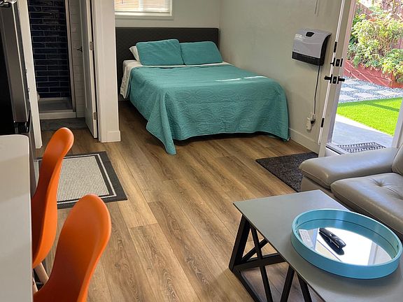 Charming and freshly renovated fully furnished studio apartment located in the heart of Encinitas that is part of a larger property with two other homes sitting on it. Enjoy the daily onshore ocean breeze just 1.3 miles from Swami's Beach. This has new luxury vinyl plank flooring, cabinets, brand-new stainless steel oven range and refrigerator with its own entrance. There's ample off-street parking, a nice low maintenance private yard. There's room to garden, soak up the sun, play, BBQ and enjoy! You get all of this within walking distance of pickleball and Encinitas's award winning schools (elementary, middle and high) and a short drive to a bevy of shopping and restaurant options. You'll feel right at home! Month to month lease with security deposit equal to one month's rent. All utilities, including gigafiber internet, paid for by the owner. We are looking for a month long lease for the final month of summer (AUG) with all utilities paid by the owner.