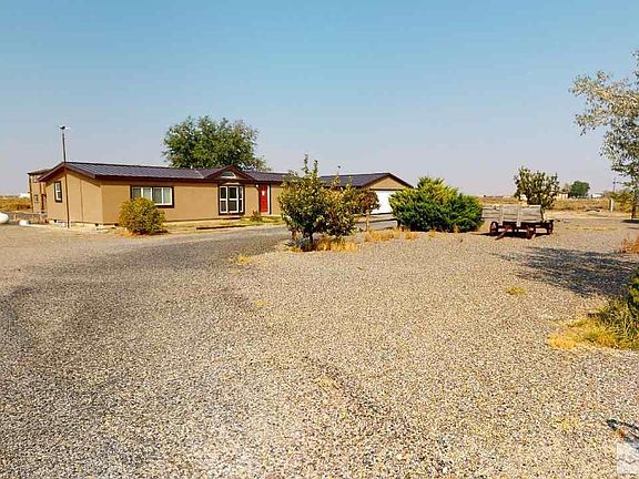 Well cared for 3 beds, 2 bath home on acreage. 2 car detached garage, 3 storage sheds and a 2-story playhouse or additional storage. About two acres of the property is fully fenced. Stucco exterior and metal roof on both the house and garage. Mature trees, garden area, and grass all on auto sprinkler and drip for seamless care. Central AC. Inside you will find an open, split bedroom floor plan. Pellet stove in the living area and French doors in the dining room that lead out to the covered back deck. The bedrooms are large with the guest rooms having large window seat "like" sills. New vanity and flooring in the guest and master bath. Mater bed/bath has double sinks, a garden tub/shower combo, ceiling fan and walk in closet. New flooring in the laundry room and new water heater!