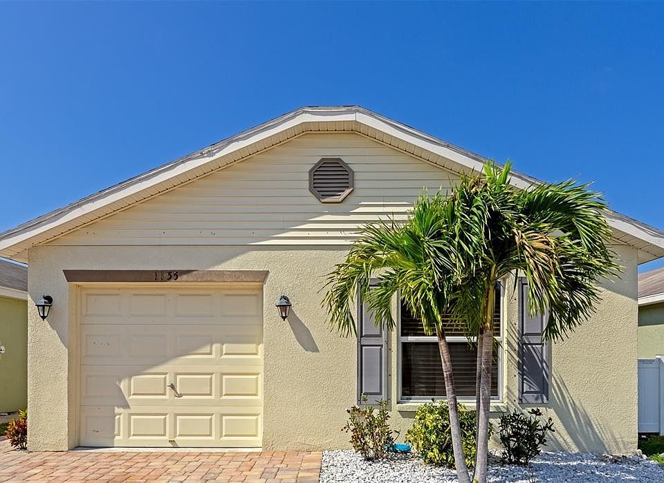 Attractive home in Cortez landings with open kitchen and easy care vinyl flooring, built in 2016. Split floorplan and breakfast bar in the klitchen, great open layout with tall ceilings in the living area. Home offers a one car garage, and a fenced yard with a cute trellis. This community has attractive low HOA fees and no CDD.