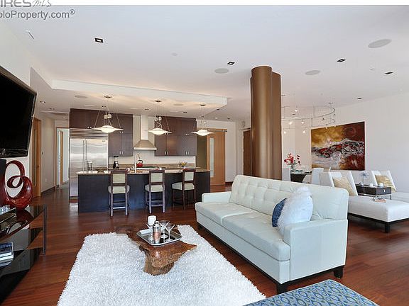 Luxury 3rd floor unit with Flatirons and Mt. Sanitas views. Rare 3 bedroom Downtown condo with custom finish. Open floorplan with large west facing glass with 2 decks. Great floorplan for entertaining. Brazilian cherry floors, Wolff and Sub Zero kitchen appliances. Custom halogen lighting. Kohler digital showers, and electrically operated window shades to name a few of the features.