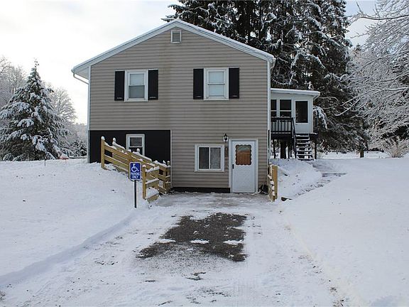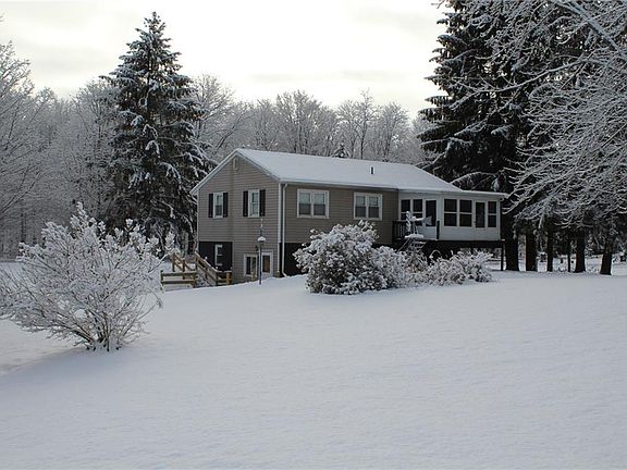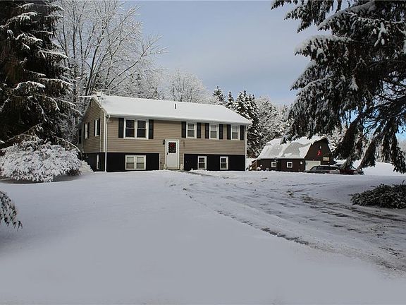 Well kept raised ranch home on 3.93 acres. Three bedrooms on main floor with 1-2 more possible bedrooms off finished family room downstairs. Enclosed sun porch off kitchen for a perfect spot for morning coffee overlooking private back yard. Property has a permit for commercial zone use as currently sellers have an antique business though this space could easily be used for office or small hair salon as water is available. A 20x30 ft barn could be used for a small hobby farm or horses with plenty of fenced in pasture area. Plenty of income possibilities. Freshly painted throughout with new woodwork and updated bathrooms. Call today for a look!