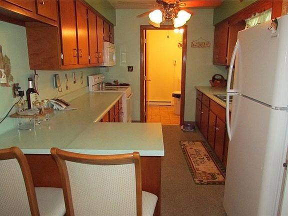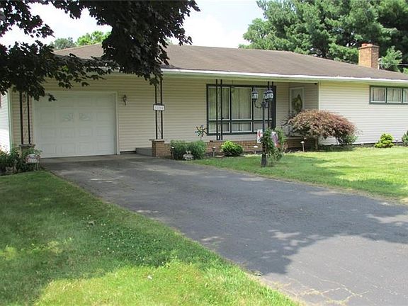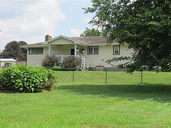 Well kept 2 bedroom ranch with .48A lot. Front and back covered porches. The attached garage with automatic garage door opener is close to the kitchen making unloading a breeze. The eat-in kitchen is complete with electric range, refrigerator and microwave oven, many cupboards and a bar. The spacious living room with separated main floor entryway is so inviting. The hardwood floors have nice wall to wall carpet for a cozy feel and easy maintenance. The two bedrooms have large closets and good lighting. The full bath with shower is convenient to both. A linen closet and storage closet are in the hall. The full basement is accessed from the garage. the basement has a partial bath with shower, wood burning fireplace and newer hot water tank and electric furnace with central air. The back porch with trex flooring exits to a fenced in yard for your pets or children. The lot is beautiful and goes to the next street. Seller is offering a 2.10 Home Warranty.