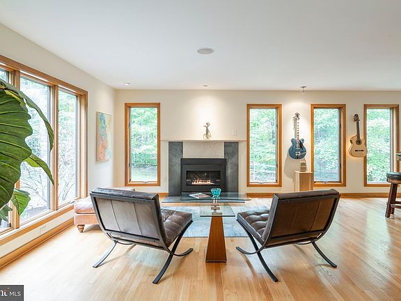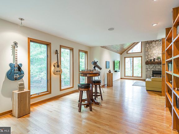 Luxury living awaits you! Welcome to this beautiful and meticulously cared for 5 bedroom, 4.5 bathroom contemporary masterpiece. Nestled amongst gorgeous mature trees, and situated next to a scenic pond, this home offers privacy and promises luxury to its future owners. Enter into the gorgeous two-story center foyer to the cozy yet sophisticated open concept living space. Hardwood floors run the length of the home while large floor to ceiling windows line the walls, allowing for ample natural light and an intimate view of the woods. Continuing to the main living room, be amazed by the cathedral ceilings and stone fireplace acting as a centerpiece for the room with beautiful custom shelving providing stylish accents. Moving through, you will come across the stunning, gourmet, eat-in kitchen featuring beautifully upgraded granite counter-tops, warm tile floors, and ample cabinet space with a contrasting island and accented tile backsplash. The stainless steel appliance package includes a sub-zero fridge, built-in oven, built-in microwave, and cooktop with range. To the rear, find a quaint breakfast nook with views overlooking the back-yard and pond. From the kitchen, you'll find access to your incredible screened in back porch with remote controlled automatic screen which opens to the tiered deck. From the kitchen, enter into a beautiful room currently being utilized as on office but could also be used as a dining room. You will also find the main floor laundry/mudroom which leads out to the three-car garage and an elegant powder room. Moving to the 2nd floor, you will find 4 of the home's spacious bedrooms. The primary bedroom boasts gorgeous hardwood floors, a focal builtin headboard, and a custom shelving unit. You will also find an incredible walk-in closet and the primary bathroom suite consisting of a generously sized stall shower surrounded in Portuguese tile, double sink, and free-standing soaking tub. Soak in the upstairs hot tub with views and music, or take a sauna downstairs. The outstanding basement area operates as an entire separate living space that opens onto a private terrace overlooking the woods and pond. Here you will find a recreational paradise and your own personal gym area complete with sauna and full bathroom, which can also double as your 5th bedroom! Walking outside to the backyard, you'll find a blue flagstone patio, an open fenced in backyard with access to a path that runs around the pond, and your tiered deck complete with an infinity hot tub. Watch the range of birds that visit the area year round from the hot tub, or sunsets over the rear pond while eating on the outdoor deck. This home is a masterpiece complete with surround sound throughout the home and is just waiting for someone to love it as much as its current owners. Very private and tucked away in a safe and friendly neighborhood. Ultra quiet and peaceful, yet excellent proximity to restaurants, local award winning coop for organic food (3mins), Whole Foods (7mins), Apple store and major shops (<15mins), freeways heading east/west, north, downtown Philly (40mins), New York City Ballet (90 mins). Additional upgrades include; Updated air handlers and mobile controlled heating/cooling system for year round comfort New hot water system for and excellent capacity to run four showers/bath ADT monitored security system Landscaping New Propane Tanks supplying indoor fires In-built sound system (Sonos controlled, amps/speakers) by mobile app or manual wall mounted control, Amazon Alexa/Apple as desired. Office, kitchen, first floor reading area, upstairs master bedroom and bathroom. Be sure to schedule your showing today!