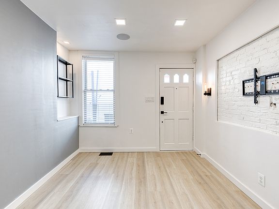 Prime Locust Point location and fully renovated! This contemporary style Baltimore charmer offers an incredible main level floorplan with a separate living room and dining room and generous sized kitchen that is drenched in natural light from the skylights. The flooring throughout the main level is a gorgeous light white oak color and really contrasts beautifully with the stylish blue lower cabinets in the kitchen. There are TONS of added built ins for storage and pantry space, the ceiling is ship lapped and has recessed lighting, there are brushed brass cabinet pulls, stainless steel appliances, and granite counters. Upstairs there are 2 bedrooms and a stylish full bath with a rainfall shower head, brick walled shower, and updated fixtures. The second bedroom is set up as an incredible closet space but could be switched back to traditional bedroom very easily. Out back there plenty of space for a BBQ, morning cup of coffee, or just a relaxing moment after work. Welcome home! Pets are CASE BY CASE with a $50 pet rent per pet if accepted. No smoking or vaping of any kind is allowed. Credit requirement is a 675 for everyone over 18 living in the home, no exceptions. Tenant is responsible for all utilities