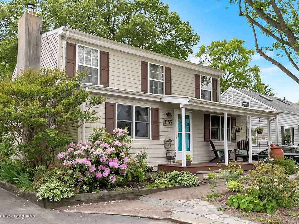 Home Sweet Home! Charming home offering modern updates. Enjoy 3 bedrooms, 2 baths, hardwood floors, eat-in kitchen & living rm w/ Jotul fireplace insert. Private third-floor master suite. Enjoy three floors of living space plus a walk-out basement with french drains. The private fenced rear yard offers an organic garden complete with a potting table, aluminum 10 x 14 screened gazebo, stamped concrete patio & shed. Rocking chair front porch w/ blue stone steps & metal roof. Gardeners will delight in the colorful gardens flanking 3 sides of the home. Ideally located 1.5 miles to Belmar Beach & 1 mile to the train, shopping, marina, and restaurants. This home has been lovingly cared for. Perfect!