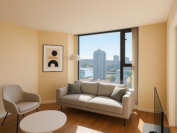 New cherry-wood laminate floorsSleek galley kitchenTop-of-the-line stainless steel appliancesFloor-to-ceiling windowsSpectacular southwest viewsBright and airyFunctional layout