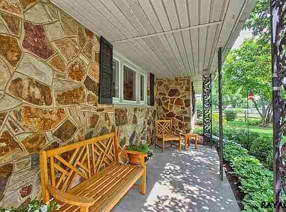 Handsome Stone Two Story with beautiful gardens! 4 Bedrooms, 2.5 Baths, Gourmet Kitchen wtih breakfast bar, under counter lights, Jenn-Air Stove, pantry & crown molding, separate Dining Room with hardwood floors & crown molding, Living Room with woodburning fireplace, hardwood floors & crown molding, 2 zone gas hot water baseboard heat, central air conditioning,covered slate Patio & oversized 2 car Garage! Includes refrigerator, oven/range, garbage disposal, built-in dishwasher, built-in microwave, landscape lights & garage door opener.