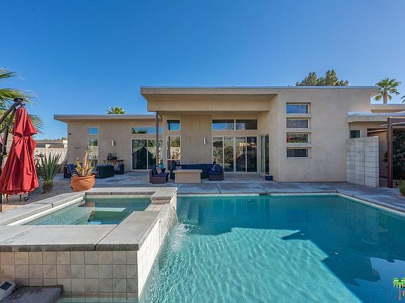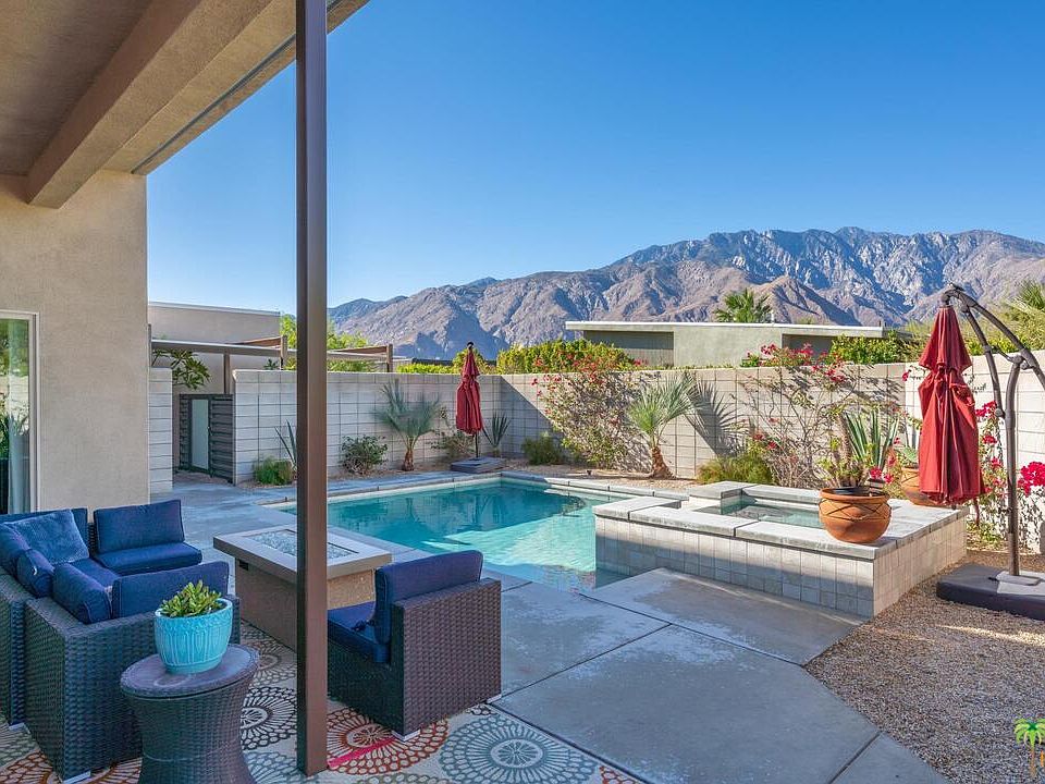 A resort setting & spectacular views abound behind privacy walls of this 2014-built Murano residence at the end of the cul-de-sac in this highly desirable community. On "land you own" and with no HOA you have the freedom to use a your personal residence and/or utilize as a permitted short-term vacation rental with excellent income potential. This highly upgraded home includes owned solar & an upgraded/expanded saltwater pool plus outdoor shower. Your front-loaded courtyard pool offers many venues for entertaining or relaxing. The contemporary interior features a great room with high ceilings, fireplace & polished concrete flooring. Walls of glass showcase views and encourage seamless indoor/outdoor living. The owner's suite is at one end of the floorplan with a 2nd unsuite bedroom & guest bedroom off the foyer. Attached 2-car garage & driveway parking for guests. This property offer value & location for the sophisticated buyer.