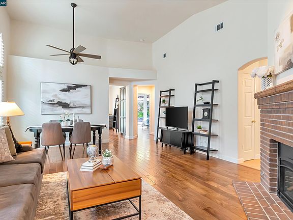 Welcome to this tastefully updated single level home. Enter into a light and bright Family/ Dining Room with high ceilings, beautiful hardwood floors, plantation shutters and a cozy fireplace. The kitchen has a new island, new bar with a beverage fridge, modern hardware and fresh paint. Spacious primary suite has high ceilings and opens to your private back yard. Updated primary bathroom has dual sink vanity, large shower and a walk-in closet. This great floor plan home has two more bedrooms, hall bath and a laundry closet. The garage has epoxied floors and lots of storage. The back yard has plenty of space to entertain and relax under the trellis. The artificial grass makes yard work a breeze. This home is ideally located near the community pool, Oakhurst Country Club, Downtown Clayton and trails. Come by the open house this weekend!