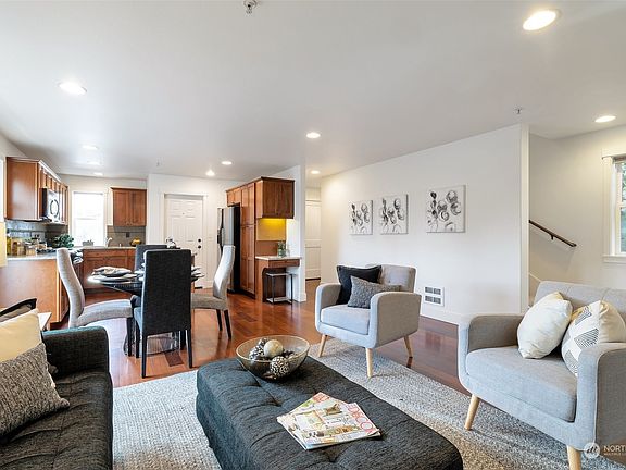Welcome to this Charming 2 bedroom home in the sought after Greenlake community. Ideally located close to Green lake, park, walking trails, bus stop,dining & easy access to I-5 & highway 99. This home offers the perfect blend of comfort and convenience with no shared walls & no HOA dues. Light & bright with gleaming hardwoods,vaulted ceilings, skylights,fresh paint & new carpet. Inviting kitchen with gas cooktop, slab granite counters, center island, stainless steel appliances & ample cabinet space. Well placed half bath conveniently located on the main level.Two spacious bedrooms filled with natural light & a well appointed full bathroom upstairs.New Washer & dryer. Enjoy your own private patio with fully fenced yard & attached car garage.