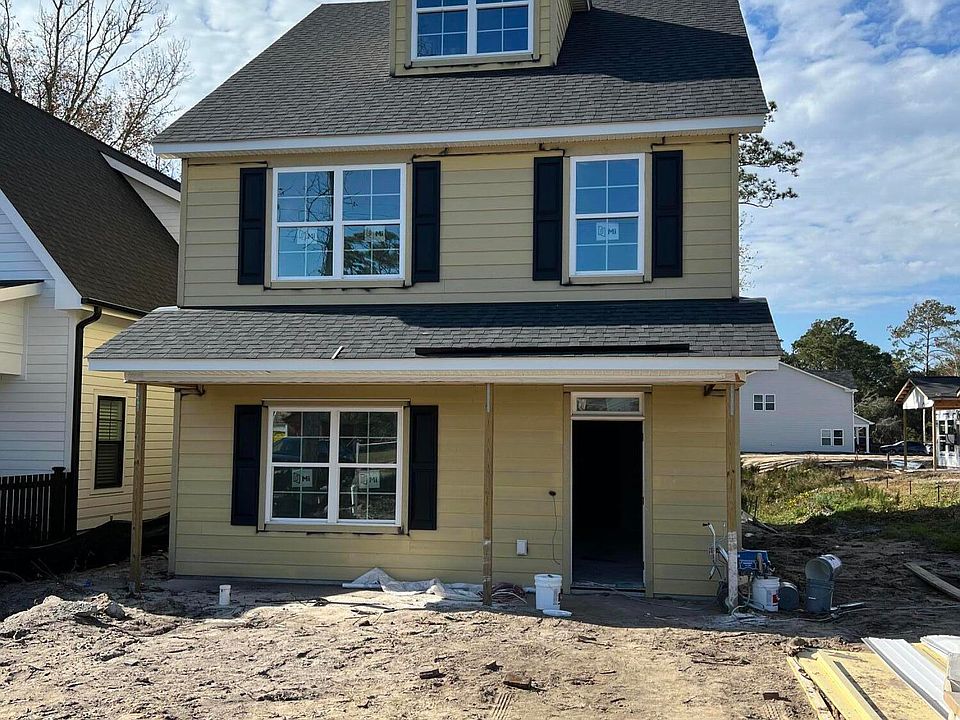 First floor features open kitchen with granite counters, 9' ceilings, shiplap island with pendant lights and crown molding. Full wood kitchen cabinets come with soft close doors and drawers. Powder room off the kitchen. Owners suite with walk in closet and walk in tile shower.