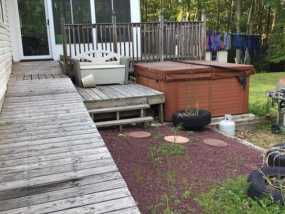 LOCATION!!! Live in the Poconos while enjoying a short commute to NJ. 8 miles to Rt. 80 with bus transportation less than 5 miles from the house. The home is handicapped accessible. Inside features include 3 bedrooms(one is being used as an office), large eat in kitchen,2 full bathrooms(one has jetted tub and extra large shower), sunroom with pellet stove, work area, wood/coal alternative furnace, possible extra living space in back of garage and much more. Outside you will enjoy soaking in in the hot tub while taking in the privacy of your partially wooded lot. Make your appointment now-this won't last.