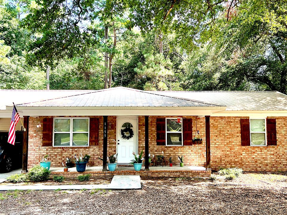 WELCOME HOME to this UPDATED secluded three bedroom RANCH with two full bathrooms. Red brick exterior with private outdoor entertaining space on the extensive deck and big backyard. Front covered patio with ample space for seating to enjoy your morning coffee or tea. Upon entry through the front door, you are welcomed to the main living room wired for an entertainment center, and is within view of the open dining area. The kitchen has been updated and ALL APPLIANCES STAY to include a refrigerator with water/ice dispenser AND the brand new Samsung Clothes Washer and Dryer behind the NEW Barn Door. One end of the kitchen leads to a huge 9 X 12 mud/ Utility room (also accessible from the carport). All fans in the living room and three bedrooms also STAY. Down the hall from the main living area, you will find 3 bedrooms with NEW CARPET installed 2023. Main bathroom with updates located across from the first bedroom; while the Owner's Bedroom contains another FULL bathroom with shower area. Shelving unit just by that bathroom door holds your amenities for bathing plus a full vanity with sink, large mirror, and new lighting fixtures are incorporated inside the owner's bathroom. Additionally, the Owner's bedroom has TWO spacious closets. Walking back down the hall to the kitchen area, The back door leads to your sprawling deck and the rest of your half an acre property with an outbuilding STAYING and shade trees. And for the children... play zones to include a swing and zip line. Fire pit section by the back of the property. Carport, Large driveway and parking areas for your outdoor large vehicles and NO HOA. New HVAC July 2021, roof and HWH only six years old, NEW carpet, NEW paint. The only thing missing from this amazing home is YOU! Call your local agent to schedule your showing today.