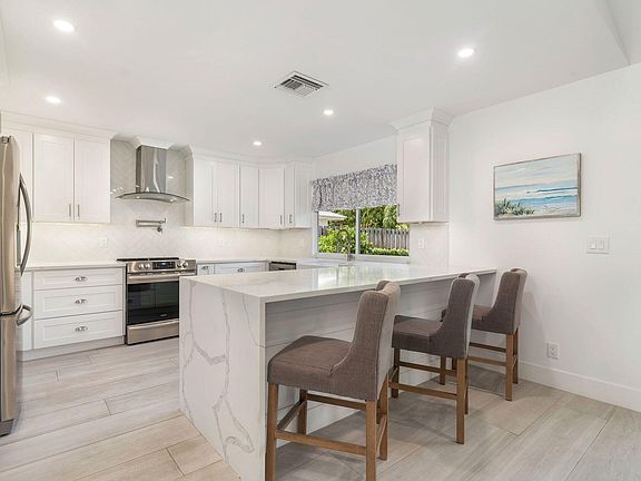 Nestled in one of PB Gardens most desirable communities, this beautifully renovated home blends modern luxury with timeless coastal charm. From the moment you arrive, you'll be captivated by the curb appeal and quality craftsmanship throughout.Step inside to discover a light-filled interior featuring porcelain wood-plank tile flooring, vaulted ceilings, and crown molding. The designer kitchen is a chef's dream, showcasing endless white, Calacutta quartz countertops, a pot filler above the stove, stainless steel appliances, a retractable microwave, and custom cabinetry. Elegant plantation shutters, designer lighting, and shiplap accents elevate every space.Retreat to a luxurious primary suite offering two walk-in California style closets, a cozy built-in window seat, and a spa- inspired bathroom with double quartz vanity sinks. Additional highlights include hurricane- impact windows, doors, and sliders, a newer roof, newer air-conditioning, fireplace, custom distressed shaker barn door, and a fenced in yard for ultimate privacy.