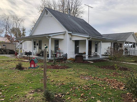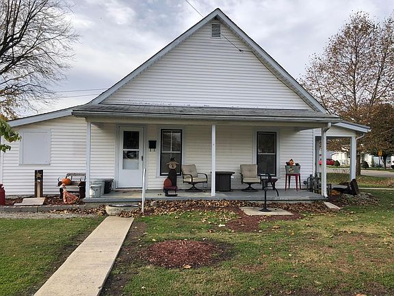 Adorable 2 bedroom home well cared for with spacious living room open to the dining area, replacement windows, updated electric panel, covered front porch and storage shed.
