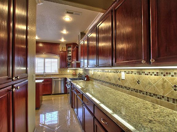 Two-Story Home featuring 6 Spacious Bedrooms and Updated 3.5 Bathrooms. Two bedrooms & 1.5 baths are located on the First Level. The home has a Big Formal Living and Formal Dining Room with Vaulted Ceilings, Custom Shutters. Exceptionally Large Updated Kitchen with Eating Area, Crown Moldings, Recess Lighting, Granite Countertops w/ center Island ,Wraparound Cabinets with build in Wet Bar, elegant marble like Tile flooring throughout the kitchen and leading through the family room. 3 Car Garage Big Yar
