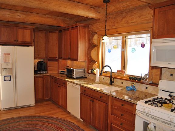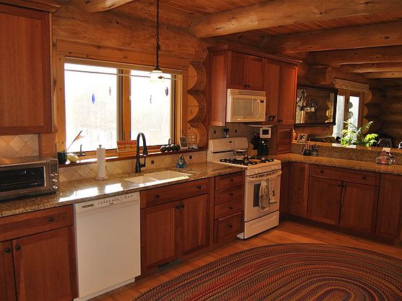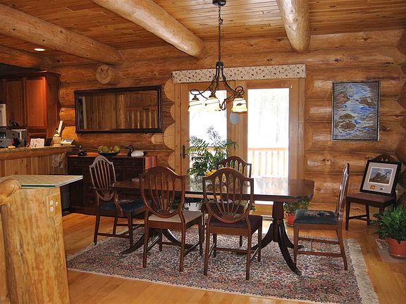 PRICED BELOW MARKET VALUE! Precision hand scribed full log home. Massive ponderosa pine, detailed artistic interior finish by talented log home craftsmen. Three bedroom, 3 1/2 bath situated on private 5 acres of mature hardwoods. First floor master, walkout finished lower level. Fireplace, granite kitchen, whole house generator and high speed internet are just a few of the notable features.