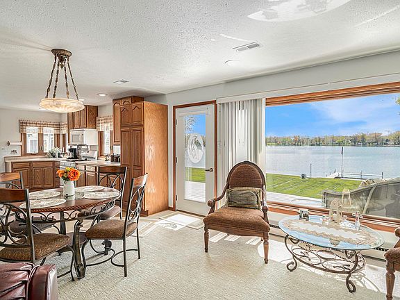 THIS PRISTINE, MOVE-IN READY, FLAWLESS HOME SITS ON 100' OF PRIME LAKE FRONTAGE WITH SPECTACULAR VIEWS IS LOCATED ON QUIET 145 ACRE, WALLEYE-STOCKED FISH LAKE WITH ACCESS BY CHANNEL TO 75 ACRE ROYER LAKE. The home features a kitchen open to the dining area and large living room with fireplace, large picture window and door leading out to the large outside deck. The master is quite large and is connected to the full bath with tub/shower and granite counters. The flooring through much of the house is new waterproof vinyl . Home is connected to a municipal sewer with natural gas and a heated pump room with a 4" well. The huge 4 stall garage across the road has 2 overhead doors for cars and is divided by a bunk room with bunk beds, window A/C and Fridge. Roof over home, garage and gazebo have been replaced in the past 4 years. LAKE LIVING AWAITS YOU!