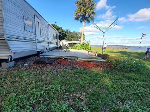 What a deal! This is a 2005, 37 foot travel trailer placed on a private lot. Motivated seller! Bring a offer! Call Lillian only! Extraordinary lake view, huge concrete slab ready for a screen enclosure. This home is perfect for snowbirds or a full time resident. Lot rent of 350.00 dollars a month . Completely furnished. In a 55+ community. You will not find a better deal. Snatch this one up before its gone. Call Lillian today!