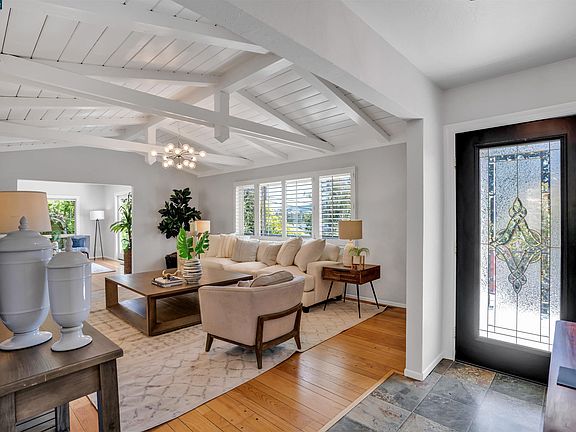 Stunning Lafayette home nestled into the hillside with a spacious, open floor plan in the highly coveted Happy Valley neighborhood. Situated on a 0.63 acre lot with no rear neighbors, views of the Lamorinda hills, and a bonus 1 bed/1 bath studio on the ground level with a private entrance. The large living room enjoys vaulted ceilings framed by a sputnik style chandelier, plantations shutters & natural light flowing throughout.The sun room enjoys french doors leading you to an expansive front deck, ideal for entertaining or relaxing in a tranquil setting. Enjoy refinished hardwood flooring through the main living room & bedrooms.The beautifully updated kitchen features sleek white cabinets, granite countertops, 2x ovens, a custom backsplash, breakfast bar & a large walk in pantry/laundry room.The primary bedroom features an ensuite bath & french doors to the backyard.Find 2 additional bedrooms & a hallway bath with a walk in shower, 2x sinks, large jetted tub, skylight & backyard views.The fenced backyard offers a flat patio area, large turf area terraced above & a garden space with hillside views.Also find an EV charger in the garage and energy efficient solar. Walk to downtown Lafayette, shops, restaurants, & minutes to top rated schools, walking trails, Hwy 680/24 & BART.