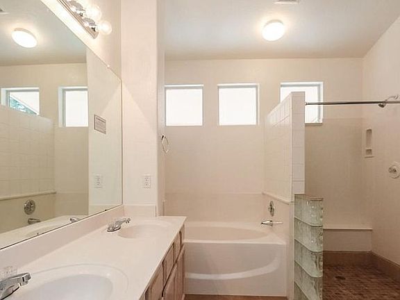 the heart of the home: the eat-in kitchen, which offers a breakfast bar and a dining area. The master bedroom includes a private en suite with dual sinks, a separate shower and an oversized tub. The covered patio in the enclosed backyard is the perfect place to enjoy a cup of coffee in the morning! Located in the Fairfax Park community, which offers a park with trails, a playground and a basketball court.