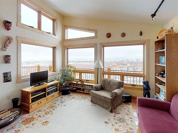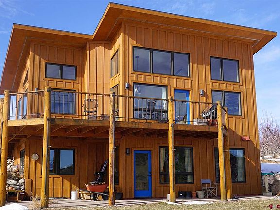 Contemporary custom home with stunning mountain views and a productive organic orchard. The light-filled main level features a large bedroom (non-conforming; currently used as an office), a half bath and a great room opening onto a wraparound deck. The lower level walks out onto a brick patio and includes a master suite with full bath, a third bedroom, a second full bath and a large laundry/utility/storage room. Part straw bale, part frame construction with lime plaster and cedar siding, the home is extremely energy efficient with in-floor radiant heat and passive solar design. A wood-burning stove provides a cozy atmosphere on cold winter nights. The solar domestic hot water is backed up with an electric boiler. The 24-acre Rogers Mesa orchard has been certified organic since 2015 and is planted to peaches, apples, sweet cherries and table grapes. One acre of sweet cherries is under high tunnel frames with propane heaters. The high-efficiency irrigation system employs two stages of filtration, a concrete settling basin, and micro-sprinklers throughout. Three wind machines, with a propane tank for each, provide frost protection. Improvements include a 3-sided 20x75 equipment shed and a 30x65 packing shed/shop building with a 3/4 bath and a 750 sq.ft. drive-in cooler. Farm equipment is available separately.