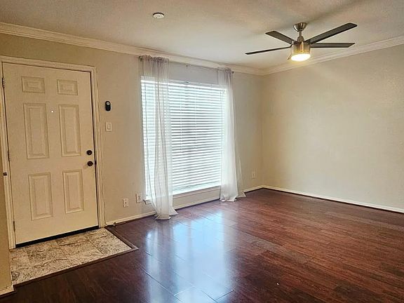 1-bedroom, 1-bath second-floor condo in the quiet, gated Westbury Square community. This unit offers laminate and tile flooring, a large bedroom with two walk-in closets featuring built-in shelving, and custom lighting throughout. Enjoy a relaxing view overlooking the sparkling community pool. The property includes assigned covered parking, on-site laundry facilities, and controlled access gates. Rent covers water, sewer, trash, and cable services. Conveniently located minutes from Meyerland, Bellaire, and the Galleria, and within easy reach of the Texas Medical Center, NRG Stadium, and Downtown Houston. Directly across from Platou Community Park, offering tennis courts, basketball courts, and a playground. Perfect for those seeking comfort and convenience in Southwest Houston.