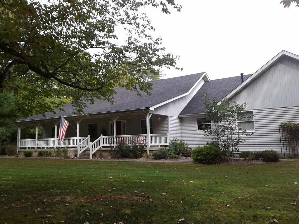 Large country porch for relaxing & swinging. One owner custom built. New kitchen in 2016. Hickory cabinets. New appliances. Hilltop wooded setting with fenced pastures. Perfect horse property with a 45x55 barn with overhead doors and horse stalls. Large sunroom that overlooks the deck.