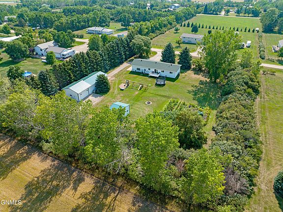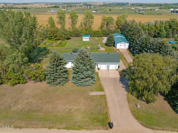 Have you been looking for privacy, a ranch-style home with UPDATES galore, complete with a heated & cooled 24X64 shop?? Here is the home for you -it has something for everyone, all just minutes from Bismarck! This home offers the hard-to-find 3 bedrooms on the main floor plus 2 n/c bedrooms in the basement. The gorgeous kitchen offers custom hickory cabinetry with slide-outs & soft close drawers from Creative Woodworks, updated appliances, and a fabulous pantry! The dining room leads to the deck and the bright family room to the cozy front porch! There is a mud room with laundry & 1/2 bath just off the oversized, attached 2+ stall garage. The main floor also offers an updated full bath (2016) and 3 bedrooms, including the master bedroom with double closets. Step downstairs and find a roomy family room with wood burning fireplace for chilly nights, office, storage room, mechanical room with additional storage, and another full bath also updated in 2016! Additional UPDATES include: NEW high-efficiency furnace with plenum heat, NEW leased propane tank is being delivered from Rud Oil ($10/year lease), updated windows throughout the main floor, updated exterior doors (including the patio door!), NEW shingles (2020), NEW overhead doors on attached garage (2022), stained porch & deck (2021). The home also offers back-up electric heat!! Now for the garage - the oversized 2-stall attached, finished garage is insulated, has electric heat, 2 service doors, attached shelving, and a MUD ROOM that is heated & insulated for your coats & boots just off the door entering the house! And the yard.... The beautiful yard is surrounded by mature trees and offers a garden area and 16X16 shed with concrete floor & overhead door. And the playset is included!! Did we mention the 24X64 heated & cooled SHOP?? The shop offers 2 separate areas. The original south portion of the shop has a 10X10 overhead door with 11' sidewalls. The addition (north) portion of the shop has 12' sidewalls and a 10X16 overhead door. Heating and cooling for the shop are provided by an air-to-air heat pump & propane. There is an office/storage room area, workbench, 100 amp panel + subpanel, a 220 outlet and the attached compressor hose reels are included! PLUS there is tons of parking pad space to the north of the shop! Don't wait - call your REALTOR to schedule a private showing today!