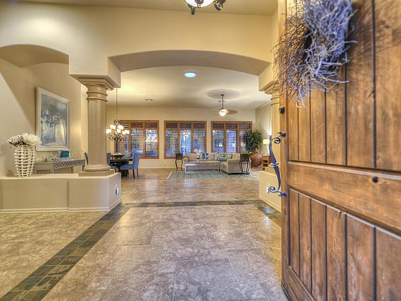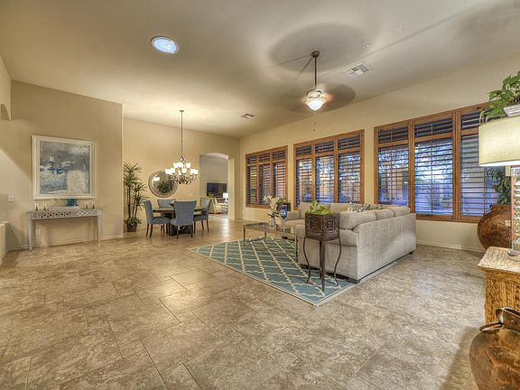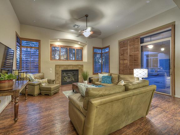 Beautiful, and immaculate home in desirable, gated community of Pinnacle at Cholla, situated on an oversized cul-de-sac lot. A tranquil water fountain greets you as you enter the courtyard. Stepping through the front door you will walk into the foyer leading you to the spacious living room. This smartwired home features wood & 20" tile flooring, plantation shutters, and more. Family room with a fireplace open ups to a gourmet kitchen. Kitchen has slab granite counter, slate backsplash, gorgeous Alder cabinets, and all stainless steel appliances. All bedrooms are en suites. Double door entry to the huge master retreat with sitting room. Luxurious master bath and large walk in closet. Home has private office, which can also be a 4th bedroom. Cozy backyard with covered patio and large grassy