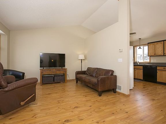 Beautiful home on a large corner lot! Freshly painted interior with new carpeting! Main level features vaulted ceilings, hardwood floors and good natural light! Bold kitchen design with matching cabinets in dining room. Great storage and kitchen preparation space. Master bedroom with walk-in closet and en suite. Fantastic backyard with patio provides space for outdoor entertaining! Near walking and biking trails and parks. Wonderful community. Close to the Crow River and Crow Hassan Park Reserve for the outdoor enthusiast!