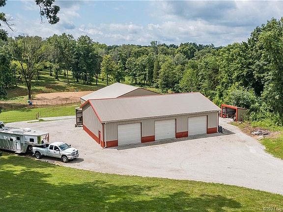 Horse Farm with the perfect set up: Over 2000 Sq Ft brick ranch on full, finished, walkout basement. 4 bedrooms (plus 2 offices) 3 baths, Floor to ceiling Creekstone see thru fireplace; 2 kitchens, 2 laundry rooms, 3 fireplaces & many updates in the last few years; 64X40, 3 bay shop with lift, central air and wood furnace; 65X70 horse barn with 52x65 indoor arena, 6 stalls, 120 x 140 outdoor arena with Brownstown Quarry sand; Pasture has new fence in 2008; this is set up perfectly with privacy on all 4 sides so the whole property cannot be seen from the road; an easy 25 miles from Louisville, Ky. The kitchen is laid out in a comfortable and ample space with beautiful custom cabinets, large breakfast bar provides excellent space for quick meals before riding your horses. There is a 12 x 12 Harvest Screened porch off the kitchen with a gas fireplace; the deck is HUGE and the front porch and lower level both have exposed aggregate concrete, are oversized providing room for many parties & gatherings; The decks, back patios and harvest porch all overlook the back layout of the farm providing peaceful views and views of the outdoor arena. The shop is a dream for anyone who works on their own cars or equipment or just want to convert to a HUGE ManCave.. the air and heat are already there ready to convert for your cave; All placed perfectly on just under 7 acres.... Do NOT drive up the drive without an appointment.. all clients must have pre-approval letter prior to viewing..