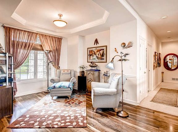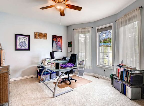 Stunning rare ranch home in desirable Ranch Reserve! Enjoy gorgeous, panoramic mountain views from inside and out. Open floor plan featuring a office/den, a family room with a cozy fireplace, a bright eating space and large kitchen w/Corian counter tops & upgraded cabinets. The secluded master bedroom features a private, 5 piece master bathroom with jetted tub, dual sinks, shower and walk-in closet. The unbelievable finished basement features heated tile floors, a 3/4 bathroom, two additional living spaces, a full kitchen with a bar and eating space, a craft/workroom with a built-in, fold down craft/drafting table, 2 large bedrooms and ample storage. Truly the best basement you will ever see! Other features included a main floor laundry/utility room with built-in cabinets, built-in shelving in all main floor bedrooms, gorgeous low maintenance landscaping with water feature, large trex deck off kitchen, central air condition, and many more! Simply the best value in the area.