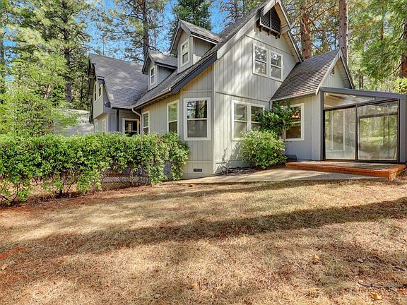 Classic Farmhouse Styled Residence located on desirable lower Banner Mountain. Under 5 minutes to downtown Nevada City or Grass Valley shopping. The floor plan has great flexibility and can be used as 4 Bedrooms or 3+ Large Bonus Room or 2+ two home offices. The Main Level features an inviting Living Room with wood beamed ceiling and effective wood stove. A large eat-in Kitchen with Oak Cabinetry and narrow plank oak hardwoods is expanded further by the all glass multi-purpose Solarium. This level also has 2 Bedrooms with custom built-ins, a large Shared Bath and laundry room. Upstairs are 2 Very Large Rooms with vaulted ceilings. The Primary Bedroom has a spa-like Bath with sunken tub and walk-in shower. The Bonus Room/Bedroom* is a generous space that could be used as a Media Room/Play Room/ Art Studio and more. It also features a 1/2 bath. Located on a quiet street the newly flat lot has room gardening , patio and then some. Some updated flooring and paint would make this home shine and it has been priced accordingly. Additionally the location is close to multiple hiking & biking trails and easy access to Nevada County Outdoor Recreation and the Arts.