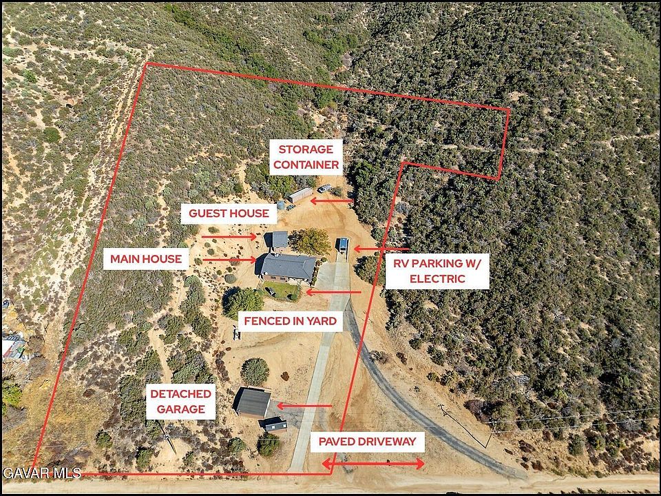 TURN KEY 3 bedroom 1 bathroom single-story home PLUS a one bed one bath DETACHED GUEST HOUSE on 7 acres of land in beautiful Leona Valley! The single-story main home features an open floor plan with custom wood flooring and beautiful cabinetry throughout! Enjoy a beautifully updated kitchen with modern appliances and plenty of counter space, perfect for entertaining and everyday country living! Additional highlights include a walk-in closet, and an extra storage closet with a pull-down attic door, and an efficient whole-house fan! The fully permitted ADU/guest house adds incredible versatility being a detached two-story, 1-bedroom, 1-bath unit featuring a newer roof and a convenient kitchenette with stovetop! The property is also well-equipped with a newer septic system, a private well with updated pump, and multiple outdoor features including a 2-car detached garage, RV parking with electrical hookups, additional storage container, and a recently paved driveway! Whether you're seeking a serene full-time residence, multigenerational living setup, or investment opportunity, this Leona Valley retreat combines comfort, practicality, and wide-open space!