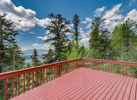 Stunning views of Pikes Peak and the Colorado Rockies from every window! This is THE floor plan you've been waiting for as it is so open and intelligently designed that the rooms seamlessly flow together. Slab granite two-level island kitchen with a prep sink and breakfast bar is the attractive centerpiece of the great room. The vaulted ceilings, walls of windows, and charcoal stained bamboo floors make for a fabulous impression as you walk into the main living area. New stove and all stainless steel appliances included in this wonderful kitchen. Special features include: Two master suites, 4 bedrooms total PLUS an office,( with double glass doors), 3 baths, 2 gas fireplaces, a wraparound covered deck , two additional view decks, concrete driveway, forested setting , nearly half an acre, and million dollar views. Kings Valley Ranch enjoys a close-in Conifer location for easy access to HWY 285 & desirable commute time to the metro area.