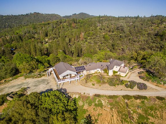 Lives like two homes with stunning views and swimming pool...sooo many features to list....3 master suites, owned solar package connected to the grid! Metal roof, built-in cabinetry, bookshelves, etc. Separate zoned control heat and AC, intercom, stereo speakers throughout, central vacuum, security system, good well with additional 1500 gal holding tank PLUS 1500 gal auxiliary holding tank that seller has never used, gravity fed NID irrigation water, pool is plumbed for solar and much more! This is an exceptionally private home that makes you feel like you are in the middle of NOWHERE but you are really just minutes from schools, shopping and public transportation. The land is very usable and ready for your new shop or running around on your quad runner. The seller has taken exceptional care of this home over the years and the land and home show great pride of ownership. This home is great for anyone looking for that family compound. Dozens of fruit trees and over 40 dogwoods too!