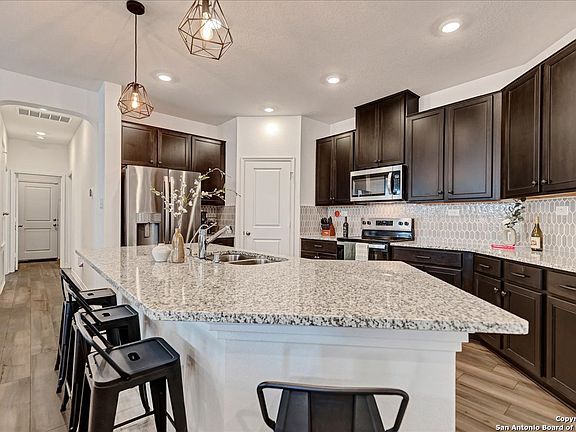 Sellers are highly motivated to strike a deal and offer $5,000.00 towards buyer closing costs! Bright, Open & Beautifully Upgraded   Step into the home of your dreams with this one-story stunner, designed for both style and comfort. From the moment you enter, the open-concept layout flows seamlessly from the dining room into a spacious living area and chef's kitchen.  The kitchen is a showstopper - granite counters stretch in every direction, extra-tall custom cabinets offer endless storage, and a generous island with sink is the heart of the home.  At day's end, retreat to the large primary suite where soaring ceilings and an upgraded spa-like bath await. Luxurious tile surrounds the soaking tub and walk-in shower, creating the perfect space to unwind.  Two additional bedrooms and a full bath provide flexibility for family, guests, or even a dedicated home office. Throughout the home, ample closets keep everything organized with ease.  Step outside to your custom covered patio, ideal for entertaining or simply enjoying a quiet afternoon in the shade. The epoxy-coated garage floor, EV car charging outlet, water softener and ceiling storage racks add everyday convenience, while the home's location - just a short walk to the community pool and playground - makes it truly special.  This is the home that has it all: beauty, function, and a lifestyle you'll love.