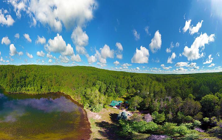 One of a kind! Imagine owning 354 wooded acres with northern hardwoods, pine and aspen, a 4.8 acre lake that is 54 feet deep with perch, blue gill and bass, cozy vintage cottage with stone fireplace and wood stove, ample space to sleep a big group, 30x40 pole barn with storage loft & insullated workshop and a single car garage. The property is located a short way down a gated private road for the highest level of privacy and security. 340 acres are completed wooded and there has been no timber harvest in many decades. The property is accessible from roads that circle the property. This is a rare opportunity to own a very prime and unique piece of Northern Michigan.