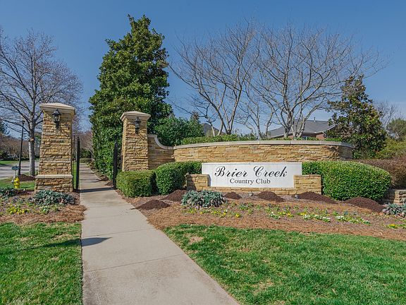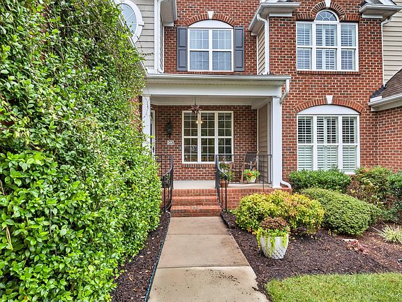PRICE ADJUSTMENT for this beautiful carriage style townhome located in the exclusive Brier Creek Country Club community, where you can enjoy a resort-like lifestyle every day! Lovely brick front accents and brick front porch steps accentuate this 3-bedroom, 2.5-bath home. Featuring a full basement, this home has been thoughtfully updated, including a new water heater (2022), NEW carpet in the primary bedroom, secondary bedrooms & common areas including the stairs! Step into the two-story foyer, where the office features French doors with a transom detail, new blinds & crown molding. Hardwoods run throughout most of the main level, including the formal dining room, which showcases a tray ceiling, crown molding & chair rail molding. The laundry room offers ample storage and a utility sink. The open kitchen is perfect for entertaining, with an island, granite countertops, brand new microwave oven, pantry, stainless steel appliances, double wall oven, tiled backsplash, under-cabinet lighting & a gas cooktop. The two-story living room features a stunning wall of windows with wooded views and a cozy gas fireplace. The main level primary bedroom offers a walk-in closet, new blinds, vaulted ceiling & a private bath with a whirlpool tub, tiled walk-in shower, water closet & dual vanity. Upstairs, a loft/flex space is ready to be transformed to meet your entertainment needs, while two secondary bedrooms share a full bath with one having access to the huge walk-in attic! The full walk out basement provides abundant storage space & is plumbed for a bathroom and fireplace. The basement also has 2 large windows and a glass paned door to the patio! The freshly-painted deck is positioned with the utmost privacy with a beautiful view of the lush trees and vegetation & no view of the neighbor's deck. Enjoy all the amenities this vibrant community has to offer, including pools, tennis courts, pickleball, golf (this home is on the fourth golf hole with an evergreen buffer) & a playground! This stunning home is conveniently located in the heart of the Triangle, less than 5 minutes from Brier Creek shopping, dining, and the RDU airport. Easy access to highways 540, 40 and 147 and 85 - a short drive to Research Triangle Park and the new Apple Campus location.