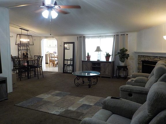 Huge 3 bedroom 2 bath Manufactured home over 1800 sq. feet. Open floor plan with huge rooms. Fireplace in the Livingroom, Large separate Dining room and additional eating area in the Kitchen. This home is in a quiet cul-de- sac street facing with private 2 car parking. This home has 2 large decks for entertaining. 6x16 and a open back deck 10x12. Quiet large yard. Home has 2 large bathrooms with garden tub and showers. 8x10 storage unit also included