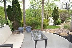 What a setting! Beautifully landscaped, heavily treed & very private! There is even a tranquil water feature that you can enjoy from the shady covered patio or fantastic upper deck! Quiet cul-de-sac location in a highly desirable resort-style golf & lake community with endless amenities! Open, flowing interior with gleaming hardwoods & lots of natural light! Gorgeous chef's Kitchen drenched in granite & boasting upgraded stainless steel appliances including a handy double oven, 5 burner gas range & even a warming drawer! Double doors open to a convenient main level den! The spacious master suite is complete with a cozy private fireplace, desirable dual vanities, windowed walk-in closet, relaxing jetted tub & a walk-in shower complete with dual shower heads! The finished walkout lower level also provides a wealth of additional living & entertaining space! Here you will find a fantastic full wet bar, charming stone fireplace & tons of room for gaming & gathering! Dream setting in a wonderful community!