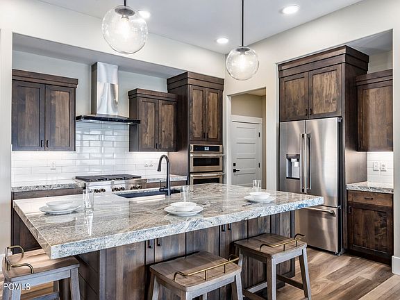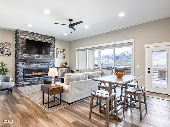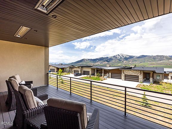 Located in picturesque Hideout within the Shoreline community, this immaculate end-row townhome offers spacious main level living with premium finishes and stunning Wasatch Mountain views. An open concept main level floor plan ushers guests effortlessly from a well-appointed chef's kitchen past a 60-inch gas fireplace, and out to the covered and heated deck for spectacular alpine sunsets. JennAir appliances, granite countertops, and motorized custom roller shades compliment the spacious, yet cozy interior spaces, while oversized windows welcome natural light into every room. The expansive lower level is outfitted with a full wet bar, second gas fireplace, large bonus/theatre room, and walkout covered patio; an ideal secondary living space to accompany two guest bedrooms. Located less than 20 minutes to Deer Valley Resort's Jordanelle Gondola, Park City's iconic Main Street, and the new Mayflower Ski Resort, both tranquility and adventure are easily realized at this mountain retreat.