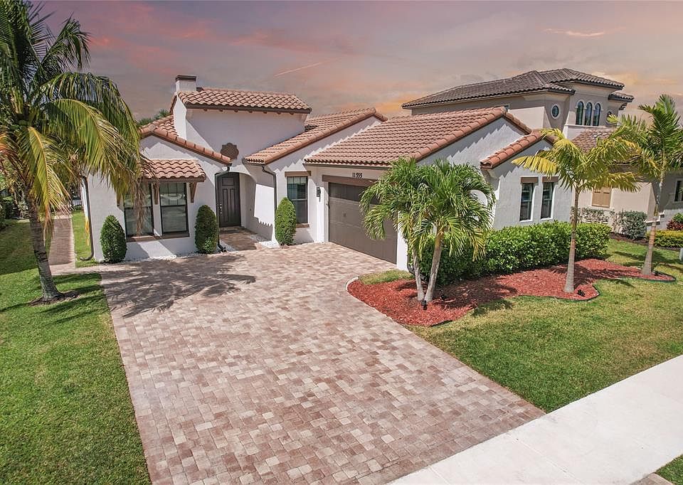 ABSOLUTELY STUNNING! This beauty features an unparalleled, sophisticated design with a spacious, open floor plan. Located in HAWTHORNE of HERON BAY, this home was built in 2017. The homeowners have taken meticulous care of the property and spent countless dollars improving the home. Some of the improvements include real hard wood floors, a custom TV wall unit with a heated electric fireplace, zebra blinds throughout, custom lighting and chandeliers, custom built ins in all closets, and much more. The heated saltwater pool was installed in 2024 and is surrounded by sandblasted marble pavers and beautiful artificial turf so you have nearly no maintenance in your backyard. Amenities include 2 Resort Style Clubhouses, Fitness Center, Splash Park, Playground, Tennis and Basketball, and more.