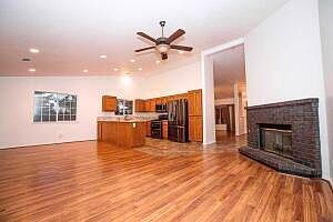 Nestled on a peaceful cul-de-sac, this spacious 5 bedroom, 2-bathroom home offers 2,376 sq. ft. of updated living space. Features include a newer roof, HVAC system, and energy-efficient hot water heater. Split bedroom plans. High ceiling . Open floor plan . gas fireplace, The kitchen boasts gorgeous granite countertops. Laminate wood floors add a touch of elegance throughout living room, family room and hallway.