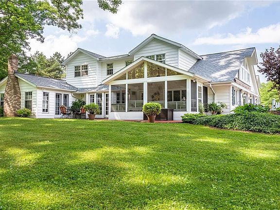 Rare opportunity to own a Unique 12.24 acre rural property with 2 ponds, 25 x 60 ft hanger, 25 x 40 barn, attached 3 car garage, Tennis court with lights, 1142 SF A- frame 2 bdrm/1 ba cottage rental bringing in $750/mo all resting on the banks of the Black River near Grafton. This beautifully updated home still retains it charm offering 4 gas fireplaces (living room, kitchen, family room and master bedroom) and 1 wood burning stove in the sitting room. Enter the double front doors into the sunny foyer leading right to a complete additional living suite totaling approx. 2143 SF with 1 bdrm/1 ba, kitchen, family room with stone fireplace, skylights and sliding doors to rear slate patio with covered veranda and 2nd floor office or bedroom and huge laundry/utility/workshop. From the foyer to the left is approx 3,687 sf including 1/2 bath and sitting area with wood burning stove, living room with brick fireplace, large windows framing the trees and ponds, sunroom with heat and air, and a one of a kind kitchen/dining room area with large granite island, tons of cabinets and counter space, built in china hutch, brick wall fireplace, pantry and sliding doors to patio overlooking the beautifully landscaped ponds, master suite with gas fireplace, french doors leading to side patio, master bath with claw foot tub, double sinks, den or nursery, and 4 bdrms/2 full baths upstairs. The main floor is all heated flooring except the foyer with dedicated boiler.
