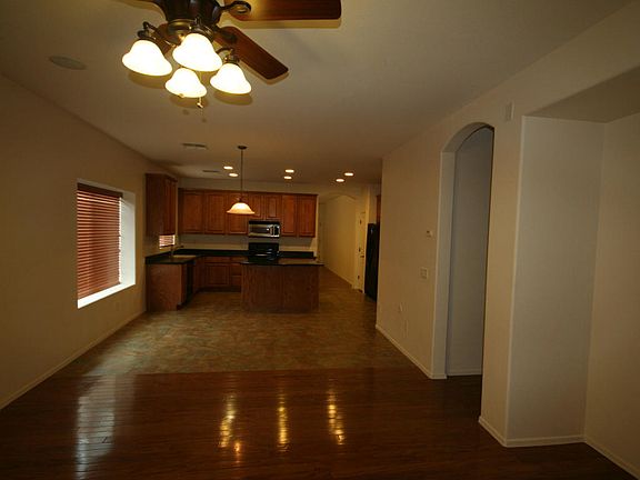 ALARM and dog in home. Home is tenant occupied, pictures are prior to being occupied. 3 bedrooms plus a den with 2 baths. Living/Dining room. Wood & tile floors thru-out. The eat-in kitchen has tile floor, island w/breakfast bar, pantry, smoothtop range/oven, dishwasher, microwave, R/O at sink, refrigerator, & more! Family room has door to covered patio, lighted ceiling fan & entertainment niche for your wall unit.Split master has bay window, walk-in closet, bath w/2 sinks & tub size shower. Den with 2 doors by master bedroom. 2 bedrooms split from master. Guest bath has 2 sinks & tub/shower. Alarm system if tenant wants to hire monitoring company. Incredible huge back yard with childs play area and sodded grass area.