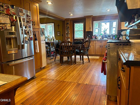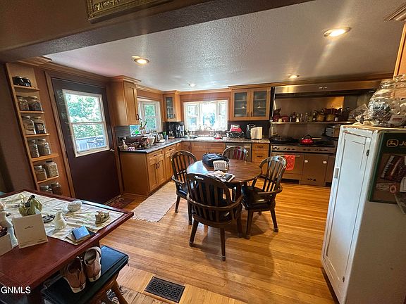 This 9.59 acre farmstead located south of New England is a must see! The 4-bedroom 3 bath house has been well kept. The open kitchen has 8 burners, 2 griddles and 2 ovens. The Primary bedroom located in the basement, has a huge walk-in closet. The attached heated garage has been converted for your projects, or simply additional living space. This property boasts multiple outbuildings that are in great space. Most have power to them with some also having concrete floors. A root cellar has been converted to a super cute playhouse. As an added bonus to the property, a cabin was moved onto the property from Medora, and it also has electricity and a wood burning stove. Absolutely beautiful! This hard-to-find property would be a great hunting lodge or country home!