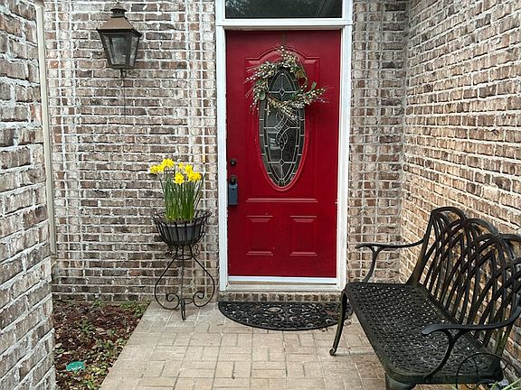 Prime location and lot in a highly desirable neighborhood! This home features a beautiful backyard with majestic live oak trees and a fantastic floor plan, including a private master suite, open-concept living and dining areas, and a breakfast room overlooking the back porch and yard. The gated alcove entrance adds charm and security, while the double garage and high ceilings enhance the spacious feel. The well-appointed kitchen offers ample counter space, abundant cabinetry, and a gas stove. Gas Fireplace and Water Heater. A 12' x 16' storage shed provides extra space in the backyard. Situated at a high elevation ridge in the neighborhood of 68' above MSL, this low-maintenance brick home boasts a four-year-old roof, a bright and airy interior, and ceramic tile throughout with wood look laminate flooring in the bedrooms. Included appliances are dishwasher, range, refrigerator, microwave, washer, and dryer. Energy-efficient for added savings!