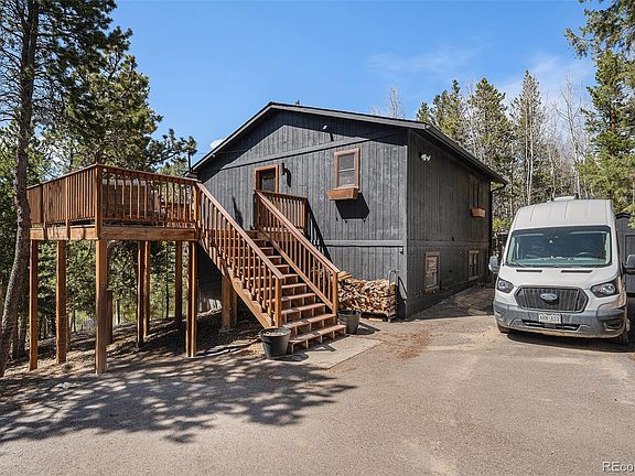 Live the Colorado mountain lifestyle in this beautifully maintained ranch-style home with a walk-out lower level and unforgettable snow capped peak views of Mt. Blue Sky, Mt. Rosalie, and Staunton State Park. The open-concept great room flows seamlessly to a wraparound deck—perfect for entertaining or unwinding. One side features expanded space for gatherings, while the other offers a peaceful perch to soak in the scenery. The kitchen boasts stainless steel appliances and rustic open shelving, while wide plank rough-sawn hardwood floors bring warmth and character to the main level. The lower level offers brand-new carpet, a cozy pellet stove, and walk-out access. A wood-burning fireplace adds charm and comfort upstairs. Fresh interior paint throughout and updated can lighting gives the home a crisp, bright, move-in-ready feel, and the spacious laundry room and shed provides excellent storage. Enjoy the convenience of public water and sewer—no septic or well to maintain. The home also features a fully fenced dog run, ideal for your furry friends, and a level asphalt driveway with generous off-street parking—rare for a mountain property. With easy access to endless Jeffco Open Space and Staunton State Park trails, this is your basecamp for hiking, biking, and year-round outdoor adventure. Don’t miss this perfect blend of comfort, character, and Colorado beauty.